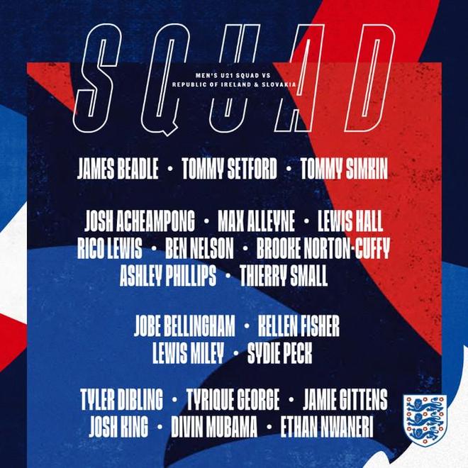 英格蘭U21隊(duì)11月大名單:里科-劉易斯、小貝林、吉滕斯入選
