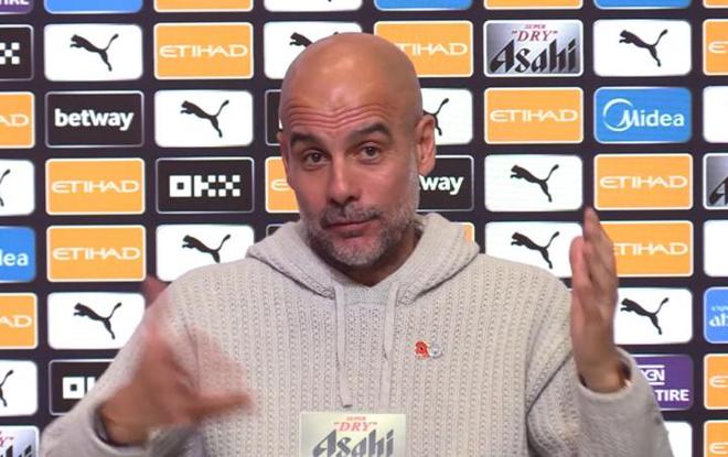 曼城主帥瓜迪奧拉出席對陣?yán)锲值挠⒊惽鞍l(fā)布會(huì),談到了在冠軍爭奪戰(zhàn)中追趕當(dāng)前領(lǐng)頭羊阿森納的話題。