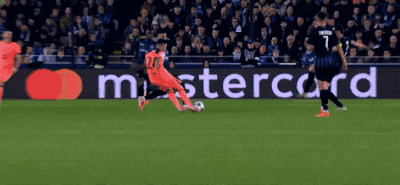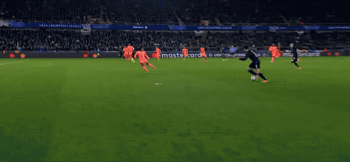 巴薩氣勢(shì)如虹,殺得興起,10名球員都?jí)哼^(guò)半場(chǎng)。第16分鐘,布魯日打出經(jīng)典的快速反擊,從本方禁區(qū)大腳解圍到進(jìn)球,全部都是一腳傳球。